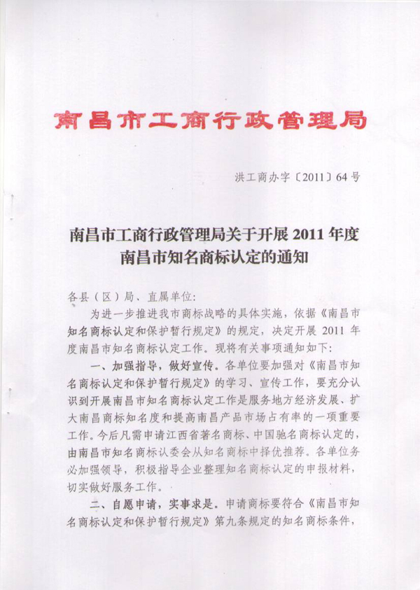 南昌市知名商標(biāo)認(rèn)定初步審查公告